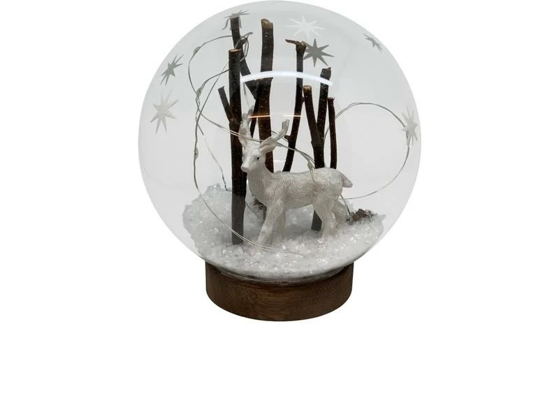 - Weihnachtlich mit Schnee, Ästen und Hirsch auf Sockel dekoriert