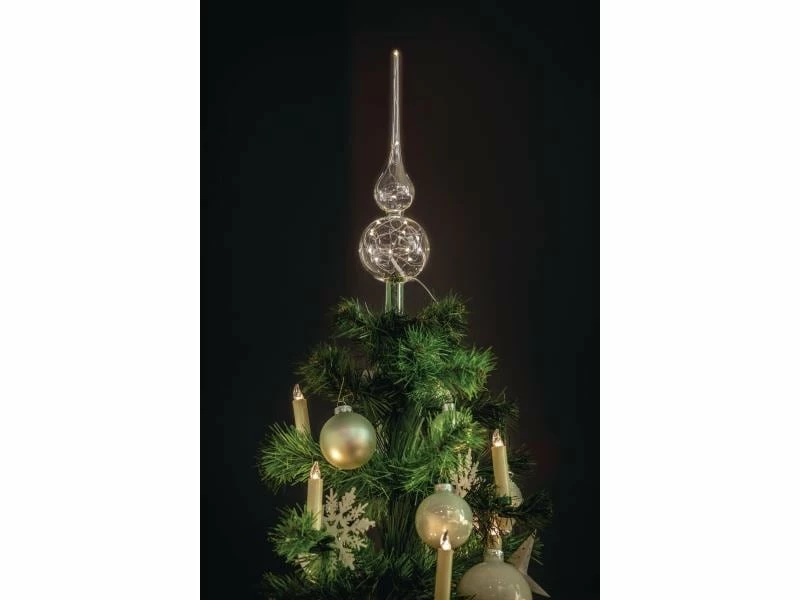 Der Lumix Tree Topper ist der krönende Abschluss für Ihren Weihnachtsbaum. Eine traditionell in Thüringen mundgeblasene Christbaumspitze, ausgestattet mit 15 hell und warmweiss leuchtenden LED’s. Um den individuellen Dekorationswünschen der Kunden zu begegnen, wird es die Lumix Tree Topper in drei Farbvarianten geben: Klar, Gold und Rot. In Kombination mit der Lumix Infrarot-Fernbedienung wird sogar der Lumix Superlight-Modus nutzbar. Das strahlende Highlight für Ihren Baum!