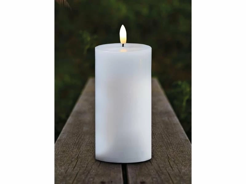 Erhellen Sie die Sommernächte mit der wasserdichten Outdoor-LED-Kerze Sille, die für jedes Wetter geeignet ist. Sie verleiht Ihrem Garten eine warme und flackernde Stimmung und