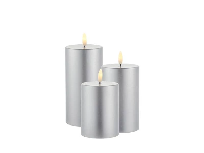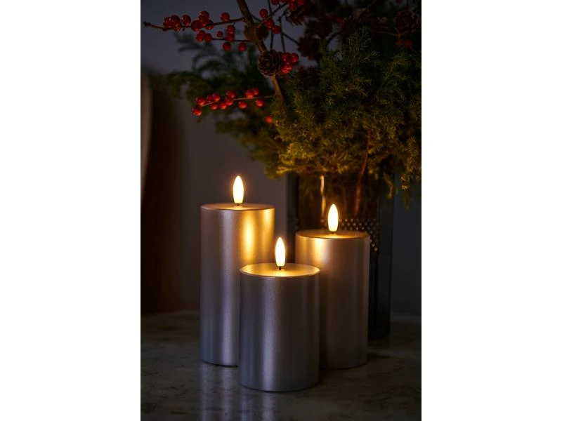 Sirius LED-Kerzen Set Sille Exclusive, Ø7.5 x 10/12.5/15 cm, Silber