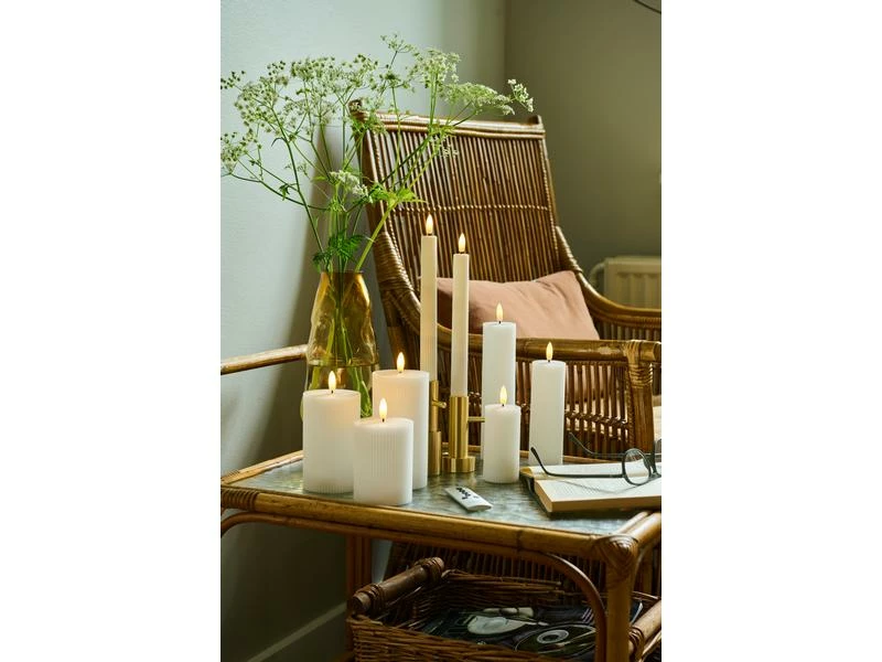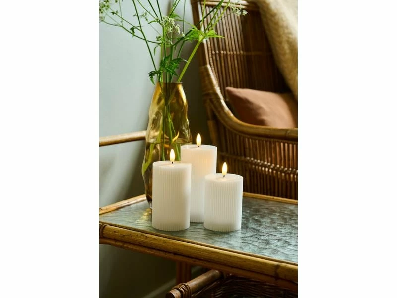 Die Smilla LED-Wachskerzen verleihen Ihrer Inneneinrichtung einen Hauch von Eleganz. Das Design besteht aus einer geriffelten Oberfläche und einer flachen Spitze, die einen frischen und modernen Look verleiht. Die Kerze verfügt über eine lebensecht flackernde