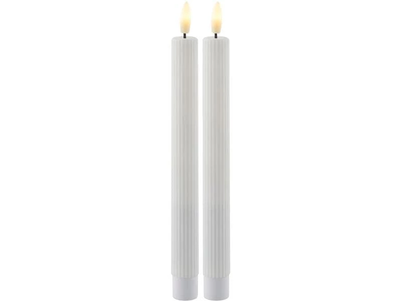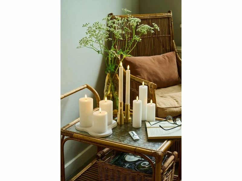 Die Smilla LED-Wachskerzen verleihen Ihrer Inneneinrichtung einen Hauch von Eleganz. Das Design besteht aus einer geriffelten Oberfläche und einer flachen Spitze, die einen frischen und modernen Look verleiht. Die Kerze verfügt über eine lebensecht flackernde