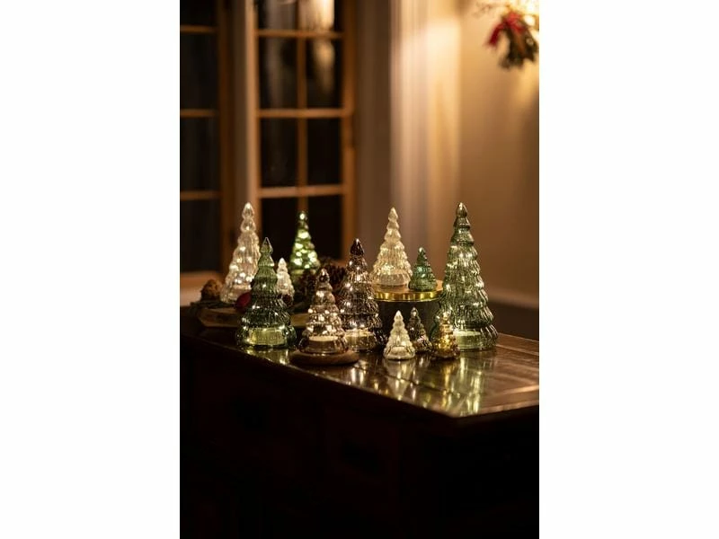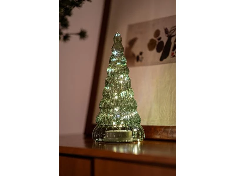 Der klassische Weihnachtsbaum wurde in dieser Lucy-Serie neu interpretiert. Das elegante Ornament ist aus mundgeblasenem Glas und beherbergt warme LED-Lichter, die sanft reflektieren. Verleihen Sie Ihrer Weihnachtsdekoration einen modernen Touch.