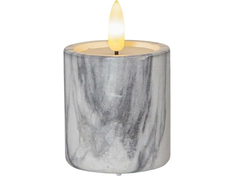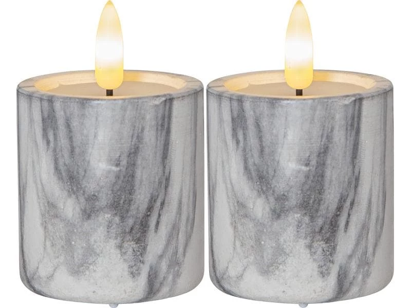 Star Trading LED-Kerze Pillar Flamme Marble Ø 5.5 x 9 cm, Grau, 2 Stk