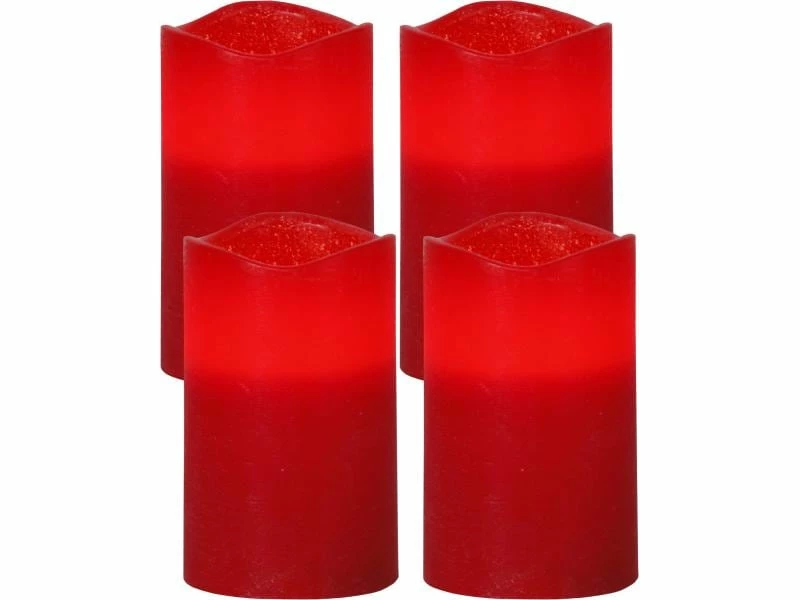 Star Trading LED-Kerzen Set Pillar May Ø 7.5 x 12.5 cm, Rot, 4 Stk