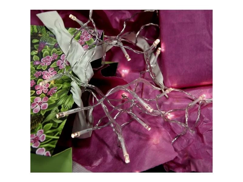 Lichterkette für den Innenbereich, 210 cm lang mit 15 warmweissen LED-Birnen. Batteriebox mit Timerfunktion.