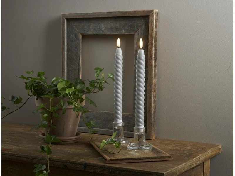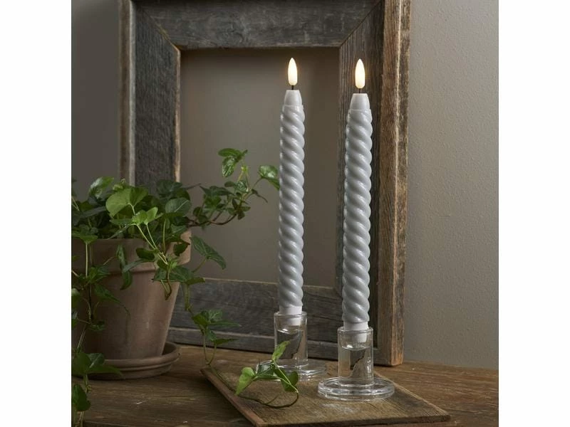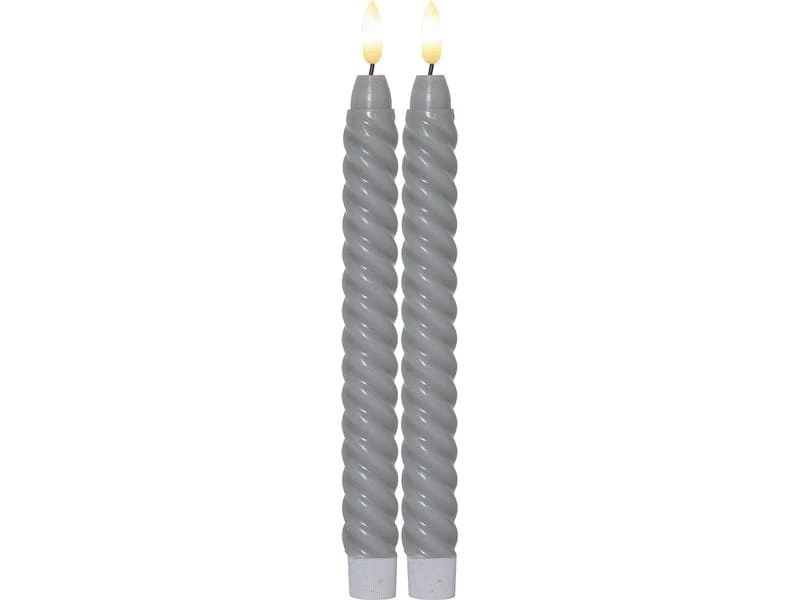 Star Trading LED-Stabkerzen Set Flamme Swirl, Ø 2.3 x 25 cm, Grau, 2 Stk