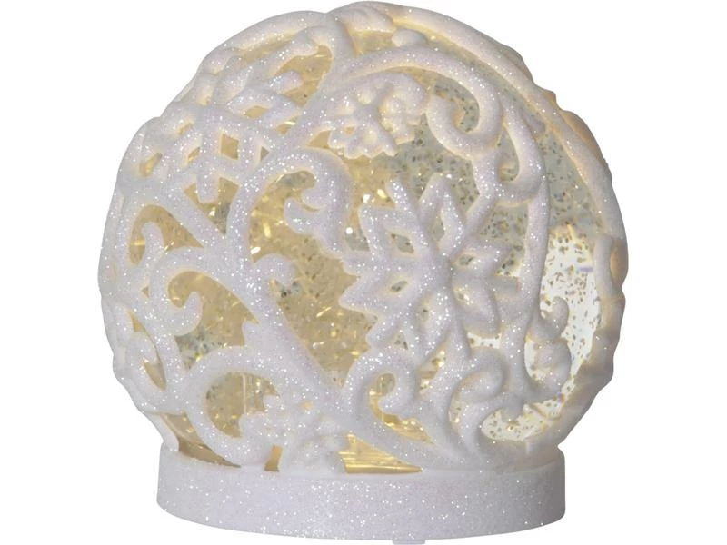 Batteriebetriebene Tischdekoration mit glitzernder Flüssigkeit. Eingebauter Ventilator mit Motor sorgt für eine schöne Dekoration mit dem Effekt, dass es drinnen schneit. Der eingebaute Timer macht es einfach, einzustellen, wann das Produkt aufleuchten soll. Dekorieren Sie zu Weihnachten und im Advent für die perfekte Weihnachtsstimmung.