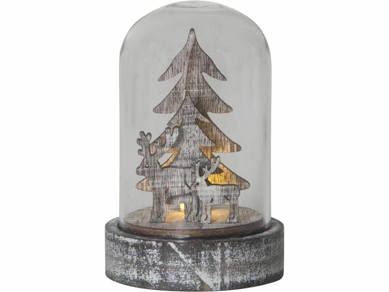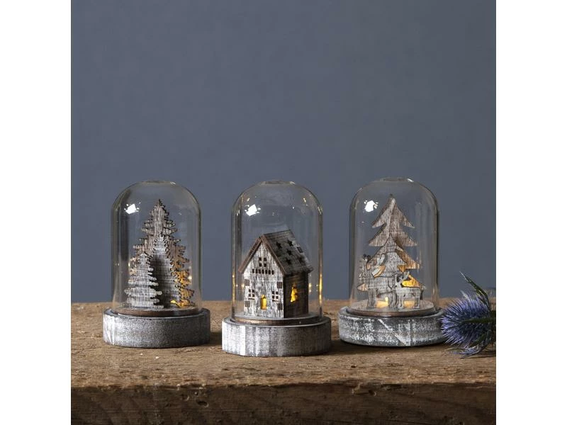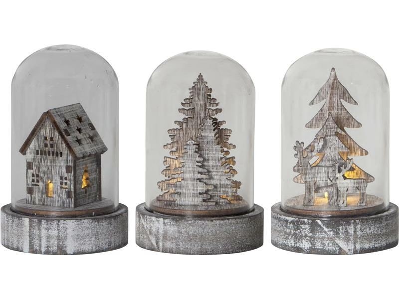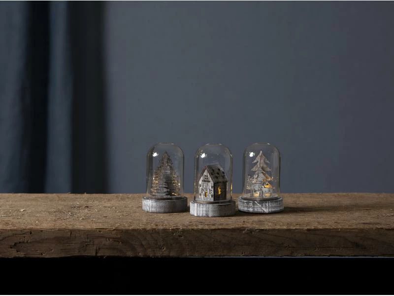 - Die drei Kuppeln werden je durch eine warmweisse, batteriebetriebene LED von innen beleuchtet