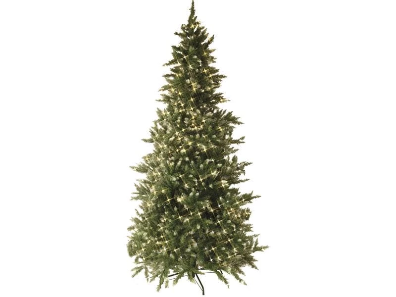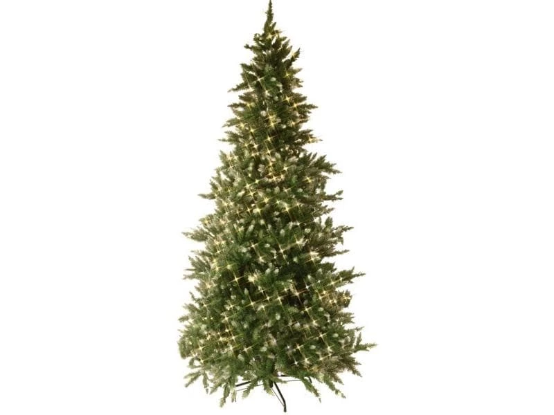 Ein schöner Weihnachtsbaum mit einem Hauch von weisser Farbe an der Spitze der Zweige. Mit 550 warmweissen LED für den Innen- und Aussenbereich. Die Zweige sind mit Scharnieren fest am Stamm befestigt und werden beim Zusammenbau heruntergeklappt.