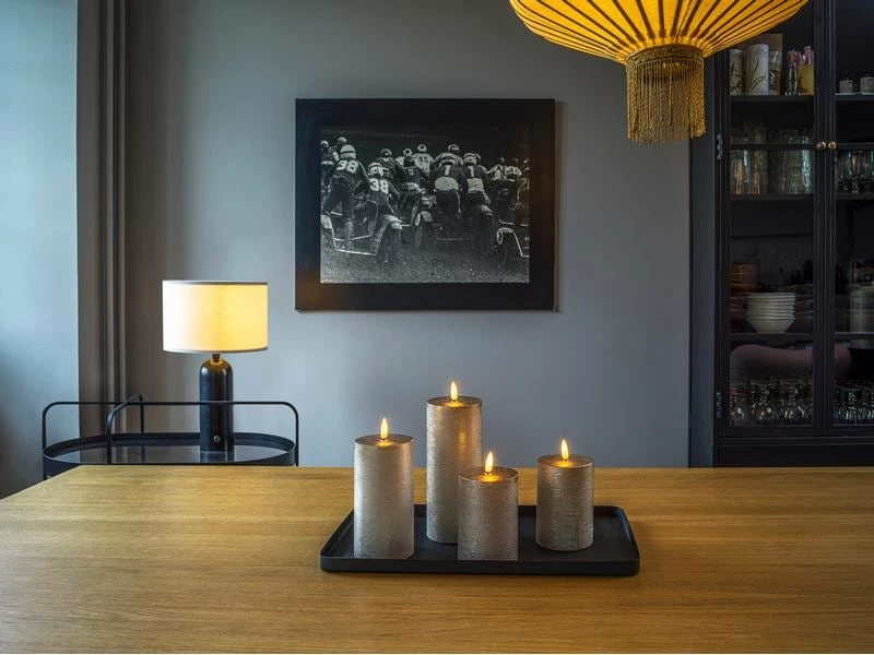STT LED-Kerzen Set Flat, Ø 7.5×10/13.5/17/20 cm, Grau
